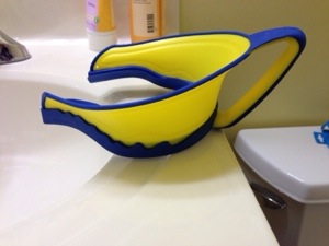 You developed a terror of having your hair washed after a single incident of soapy water getting in your eyes. So now we all take turns wearing your new special bath hat: