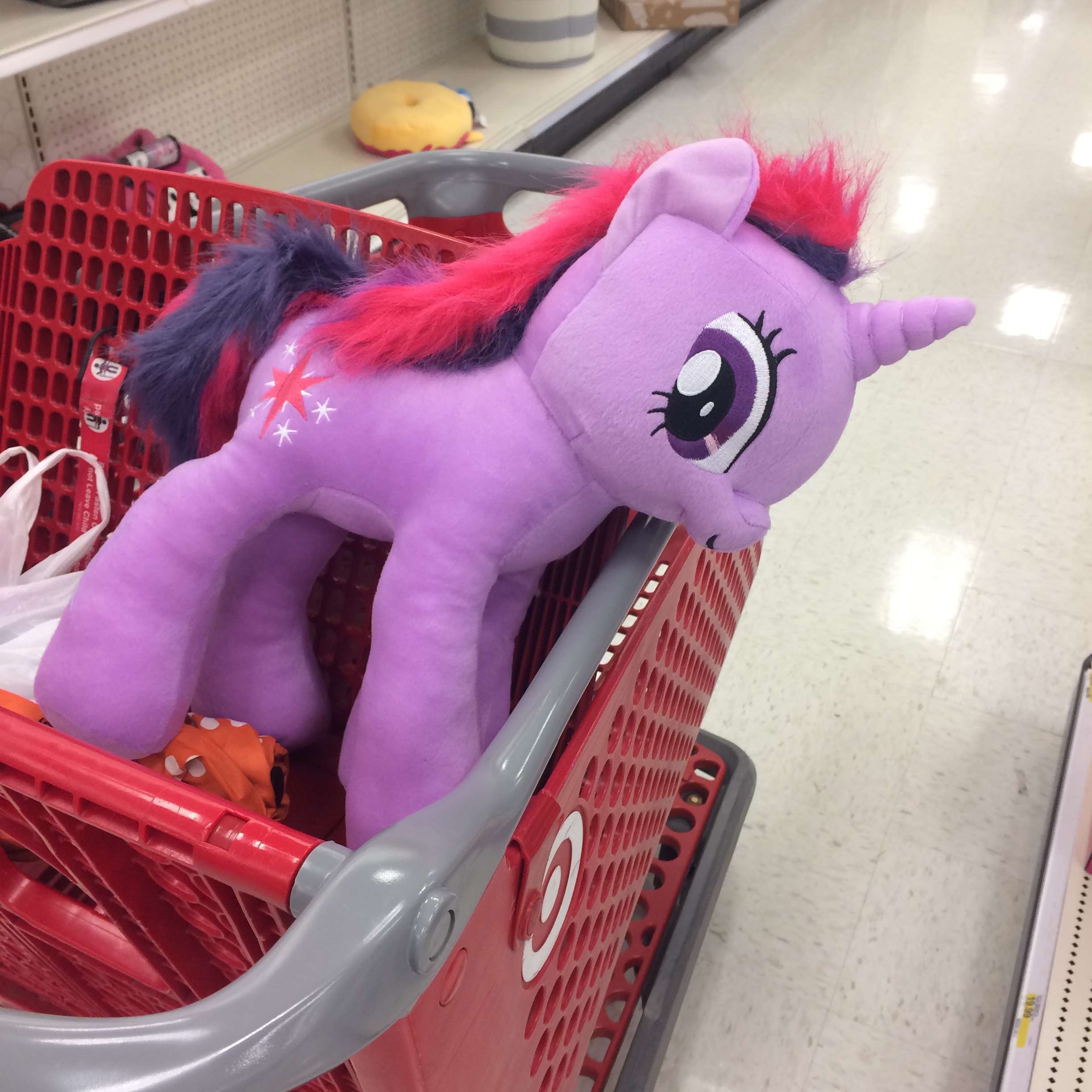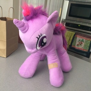 But then, as I was trolling the aisles of Target, I saw it. One lonely Twilight Sparkle among a herd of Rainbow Dashes. I googled “twilight sparkle cutie mark” to confirm I had the right one, and then nabbed it.