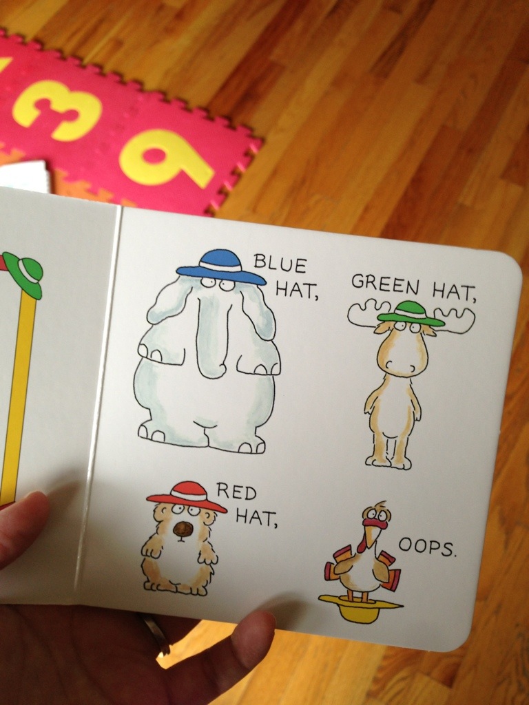 When it was my turn, I was delighted to receive a small library’s worth of road-tested baby and children’s books. Many of them have become favorites (of both Baboo and mine), and Blue Hat, Green Hat by Sandra Boynton is currently in heavy rotation at nap times.